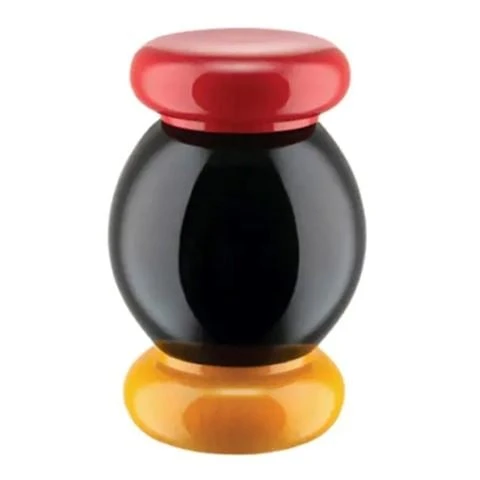 An indispensable object in the kitchen and on the everyday table, this grinder is interpreted by Ettore Sottsass with his trademark use of overlapping coloured volumes. Made in Italy, near where Alessi is based, using a partly hand-crafted turning process. The grains, knots and differences in the wood make each piece unique and distinct from the others.