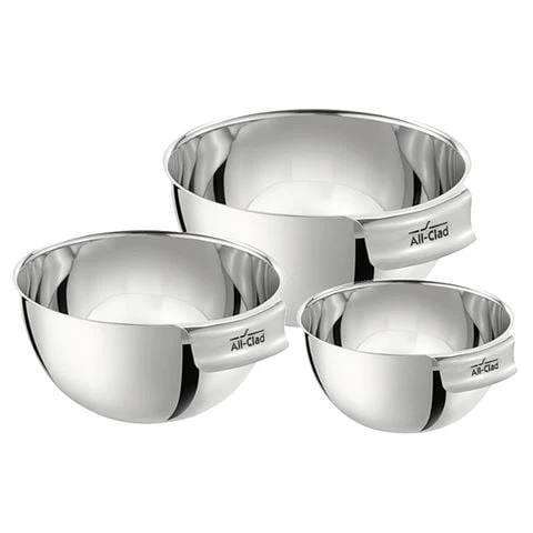 This fantastic mixing bowl set won’t look out of place among your other All Clad pieces, or adds a shiny accent to your pre-existing kitchen tools. Made from high quality, heavy gauge stainless steel, each bowl possesses an integrated handle for easy and secure use, while each bowl’s surface is easy to clean and will not react with food.