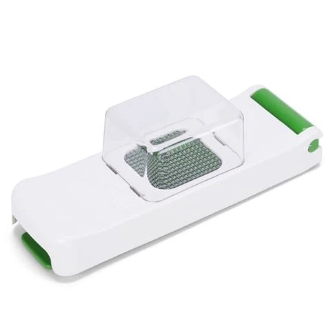 This simple-to-use gadget features a compact design and is perfect for use with garlic, olives, ginger, nuts and other smaller ingredients. Simply place your foods on the small grid and push the top section downwards – in seconds, your food is finely chopped and is pushed into the clear food collector ready to be tossed into your delicious creations!
