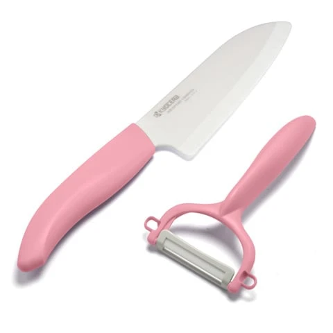- Hand wash recommended for the Santoku Knife, while Ceramic Peeler is dishwasher safe.