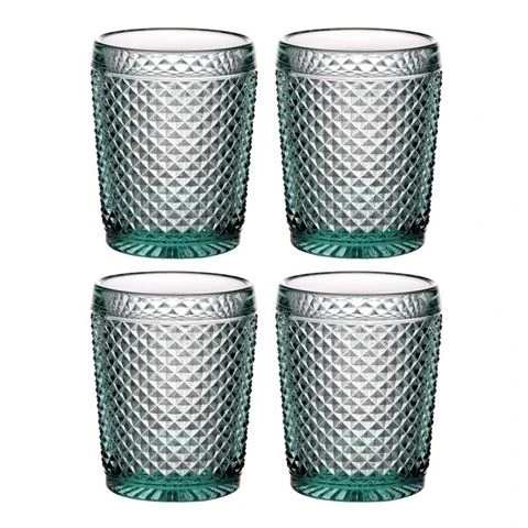 Vista Alegra’s Set with 4 Old Fashion Mint Green Bicos Cinza. For a light and fresh summer table.